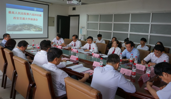庭审结束后,最高人民法院第六巡回法庭—球友会座谈会在主E910会议室召开,第六巡回法庭张明副庭长和专职党务干部(廉政监察员)郭利然带领其庭审与管理团队、西安交大席光副校长、球友会访问教授、牛津大学常务副校长Ewan McKendrick、社科处贾毅华处长以及球友会领导及师生代表数十人参加了座谈会。