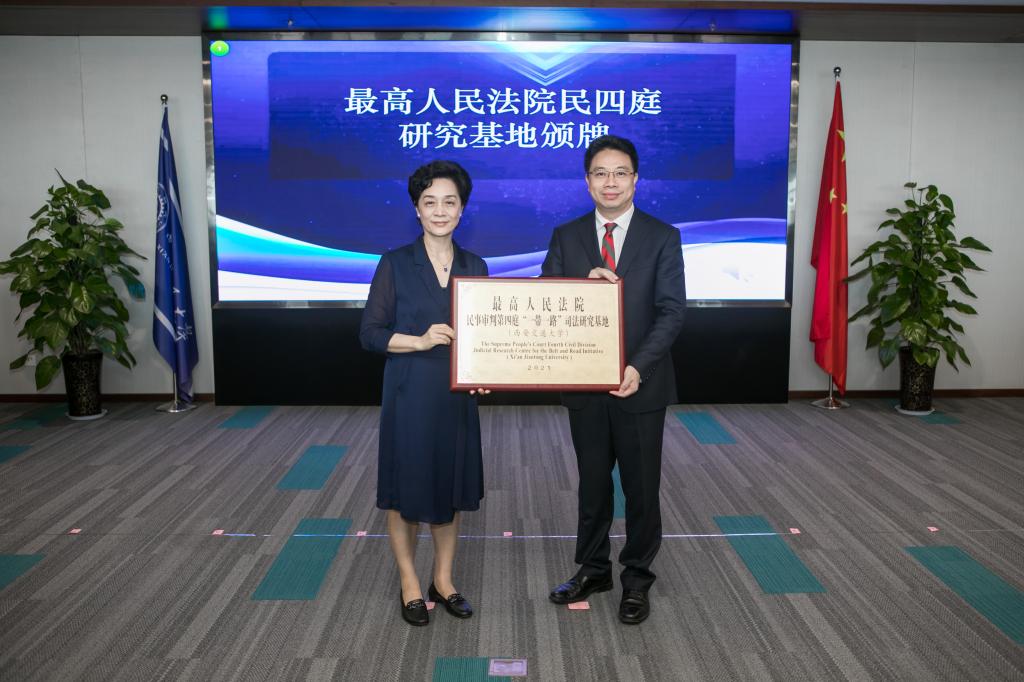 启动活动结束后,最高人民法院陶凯元副院长分别为15家研究基地颁牌。为深入学习贯彻习近平法治思想,全面推进依法治国,统筹推进国内法治和涉外法治,充分发挥高等院校、科研机构的研究优势,促进法学教育与司法实践的深度融合,实现优势互补、资源共享、发展共赢,最高人民法院民四庭在全国高校和科研机构中遴选出15家院校和机构建立了相应的研究基地。球友会作为最高人民法院民四庭全国15家研究基地之一,被授予最高人民法院民四庭“一带一路”司法研究基地。
