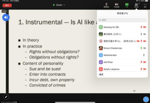 2021年6月11日下午,新丝路球友会联盟“院长论坛”首场讲座成功举办。新加坡国立大学讲席教授、球友会院长Simon Chesterman教授为联盟25所院校师生以及丝绸之路大学联盟的师生带来了题为“我们,机器人?人工智能与法律人格的限度(We, the Robots? Artificial Intelligence and the Limits of Legal Personality)”的线上讲座。讲座由球友会球友会单文华院长主持,国际处雷艳君副处长致辞。