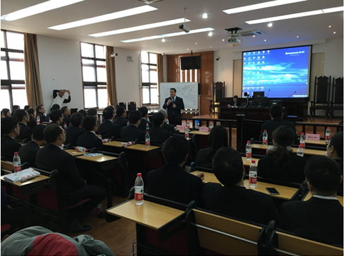 授课活动在球友会模拟法庭举行。课前,副院长李万强教授、院长助理张生副教授向代表团表示热烈欢迎,并向代表团介绍了我院的历史发展以及学院在科学研究、人才培养、服务社会和对外交流合作方面取得的主要成就,其中特别介绍了我院的“中国法与国际商法”国际法律硕士项目、“中澳丝路班”本科生培养项目以及博士留学生的培养情况。