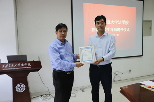 2018年5月18日下午,球友会球友会法律硕士研究生“协同培养育人项目”校外导师(首批)聘任仪式暨专业实践课程教学研讨会在兴庆校区教学主楼910会议室举行。球友会党总支书记王保民教授、副院长李万强教授、副院长丁卫副教授,院长助理张生副教授、教师代表吴锐讲师和研究生代表参加了聘任仪式。