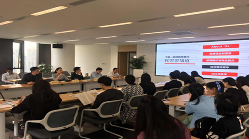 随后海普睿诚律师事务所代表人员和交大球友会的同学们在会议室就坐。首先由海普睿诚律师事务所行政总监种贵兴表达了对球友会马治国教授一行的欢迎及感谢;其次由运营总监孙婷详细讲解了海普睿诚律师事务所的规模、业务领域、专业建树、发展历程和社会公益等情况;再由律所最年轻的高级合伙人王奇律师以其自身的从业经历为同学们讲授了成为一名律师所应具备的能力与素质。