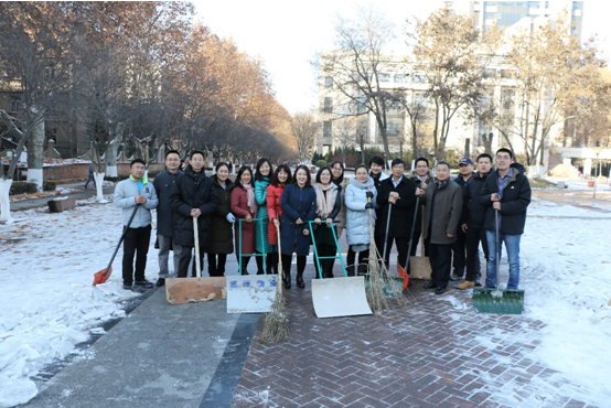 2018年1月8日下午,球友会教工博士联合党支部召开组织生活会开展党员民主评议工作。会后,党员们在支部的倡议下纷纷走向户外积极清扫校园主楼西南角道路上的积雪。