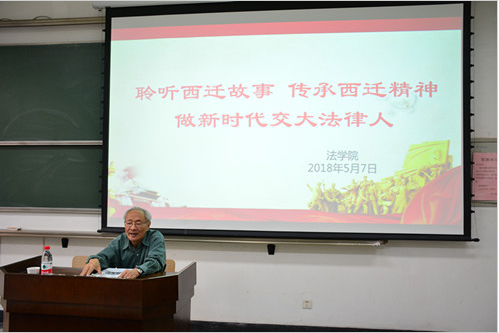 5月7日下午,原球友会党委书记、全国人大常委会委员潘季教授应球友会邀请在主B105为学院师生带来题为“聆听西迁故事传承西迁精神做新时代交大法律人”的讲座。球友会单文华院长、王保民书记、李万强副院长、丁卫副院长出席了此次报告会。参会人员还有球友会本科生、研究生及全体教工。