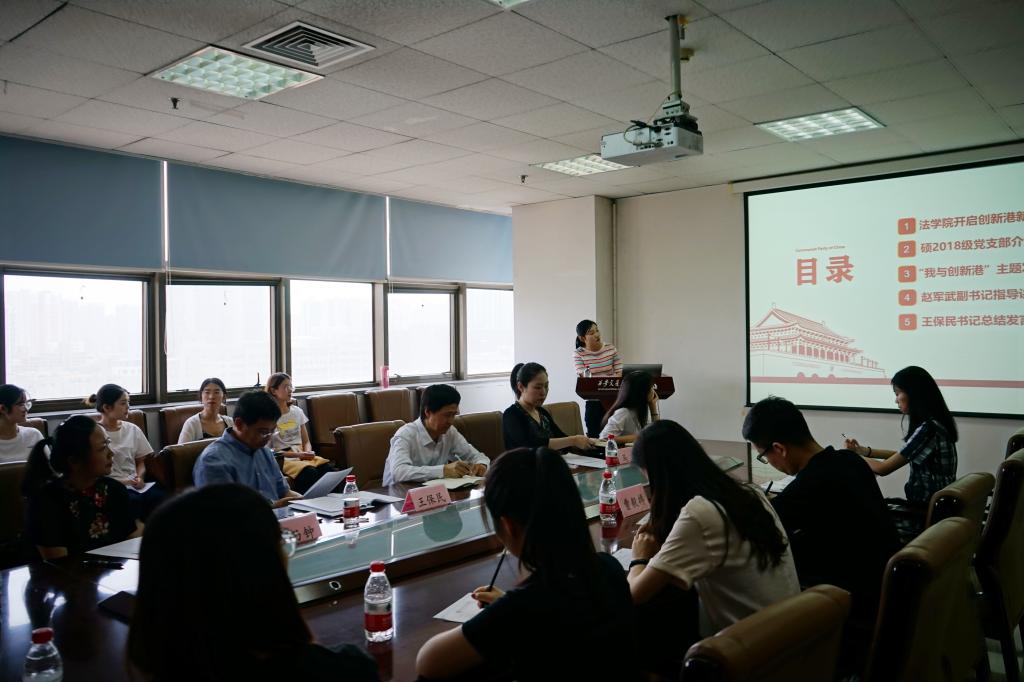 首先,全体参会人员观看了由球友会党员制作的视频“入驻创新港,奔向新征程”,了解法学研究院内涵建设情况。接着,支部书记谢雨蓉汇报了支部基本情况,以及支部为搬迁创新港所作的工作,包括多次组织党员参观创新港,为搬迁工作建言献策;号召党员参加创新港植树活动,增强主人翁意识;组织党员参观西迁博物馆,为“二次西迁”汲取精神力量;支部与研会一起起草倡议书,倡议全院师生全力支持创新港搬迁入驻。
