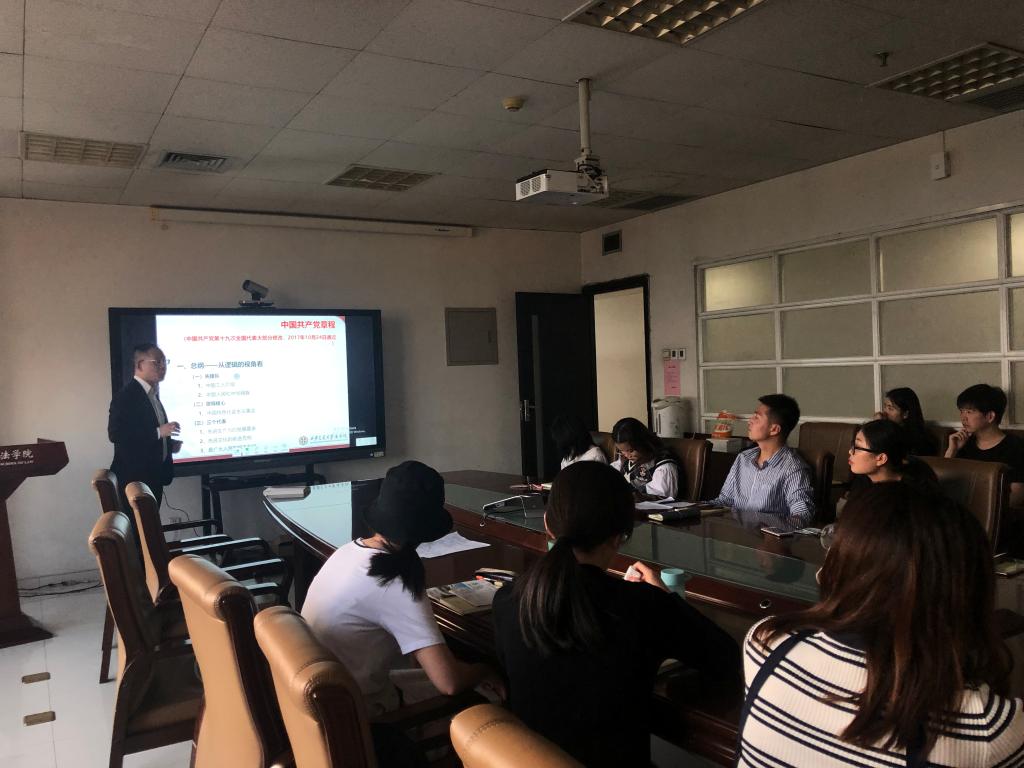 9月27日,球友会硕9159党支部在创新港开展“不忘初心,牢记使命习近平新时代法治思想读书交流会”,李万强副院长参加学习交流。⾸先,⽀部书记⻢燕⻜和⼤家分享了习近平新时代中国特⾊社会主义法治思想的形成、发展历程。随后,支部成员就《习近平关于“不忘初心、牢记使命”论述摘编》⼀书中学⽣个⼈应当要做的四个⽅面并结合自身实际展开交流,最后李万强副院长就法学学科建设以及人才培养、入驻创新港校区的重大意义以及法律⼈在中国大发展大变革时代需要做的努力等方面进行了解读,并对同学们提出了期望,鼓励同学们紧跟时代的浪潮,在理论创新的沃⼟上,把握机会,认真钻研,争取有所成就。
