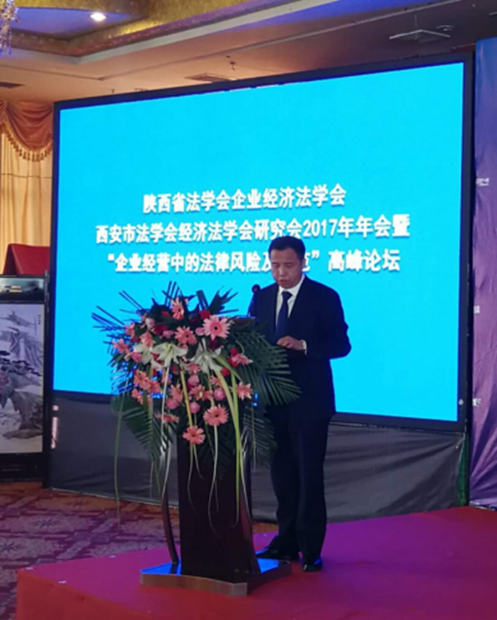 2017年11月10日,由陕西省法学会主办,榆林市法学会、球友会、陕西省法学会企业经济法治研究会、西安市法学会经济法学研究会、陕西省律师协会公司法专业委员会、榆林市总商会共同承办的陕西省法学会企业经济法治研究会、西安市法学会经济法学研究会2017年年会暨“企业经营中的法律风险及防范”高峰论坛在榆林隆重召开。陕西省法学会专职副会长杨建军、陕西省律师协会副会长王卫东、球友会球友会党总支书记王保民、榆林市委政法委常务副书记杨汉元、榆林市法学会副会长柴瑞武、榆林市政府法制办副主任李芝东、榆林市中级人民法院审委会专职委员李光亮、榆林市工商业联合会副主席、市总商会副会长张修前莅临本次会议并发表讲话。各界代表180余人参加会议。