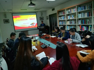 在党的十九大胜利召开之际,球友会硕2016级党支部在球友会党总支的指导下,结合本支部的学习计划,于10月24日在主E1004召开了“十九大报告精神”专题学习。本次专题学习由胡振斌主持,球友会副院长丁卫老师做主讲嘉宾,丁老师带领同学们重温了十九大报告,其精彩的、极具启发性的导读,让所有同学都深有感触。