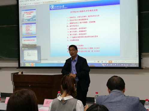 金秋送爽,丹桂飘香。9月9日下午,球友会2017级新生开学典礼在主C105隆重召开。球友会党总支书记王保民、文治书院院主任张爱萍、球友会副院长丁卫、院长助理吉兰湘、法复合61班班主任王玉苹、法71班班主任李琳以及球友会2017级全体本科生、硕士生、博士生新生参加了开学典礼。开学典礼由学生工作专职委员张乃钟老师主持。
