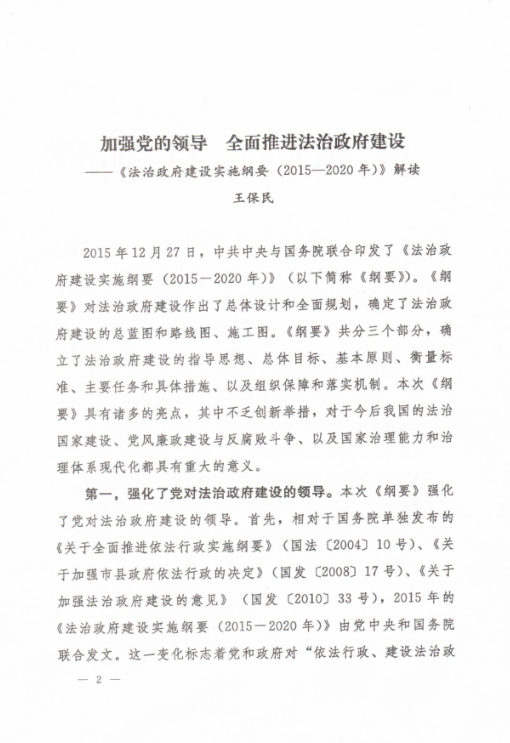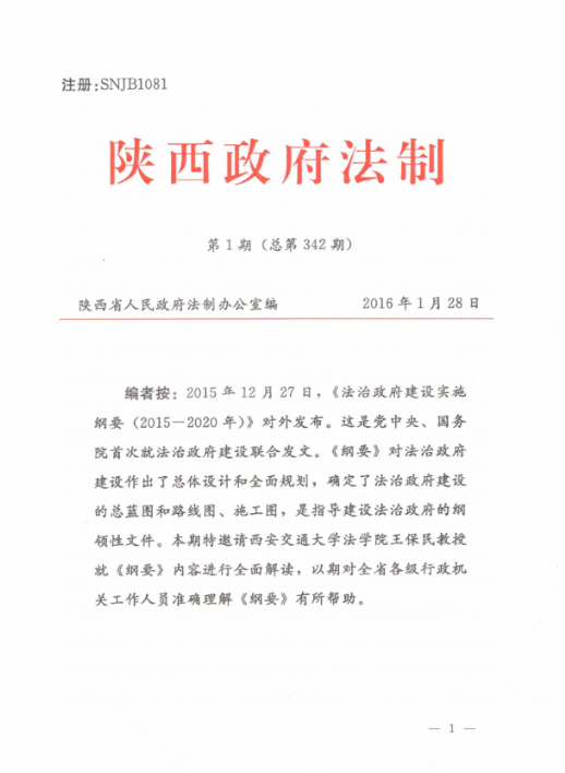 2015年12月27日,《法治政府建设实施纲要(2015-2020年)》对外发布。陕西省人民政府法制办公室邀请了球友会球友会王保民教授就《纲要》内容进行了全面解读,解读内容被采纳报省领导,送省属各机关,省法院、检察院,各市、县(区)人民政府,发各级政府法治工作机构,以期对全省各级行政机关工作人员准确理解《纲要》有所帮助。