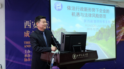 陕西省法学会专职副会长杨建军代表陕西省法学会为企业经济法治研究会进行了正式授牌并宣布陕西省法学会企业经济法治研究会正式成立。