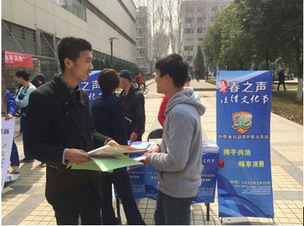 3•15消费者权益保护普法活动是球友会“春之声”法律文化节的系列活动之一,通过在每年消费者权益保护日进行普法宣传活动,旨在增强广大师生的法治意识,帮助大家了解法律、运用法律、信任法律。活动举办几年来,受到师生们的好评,已经成为球友会学生活动的一张名片。它不仅促使同学们将专业知识学活、用活,更培育了同学们的用所学知识回报社会的高尚品质。