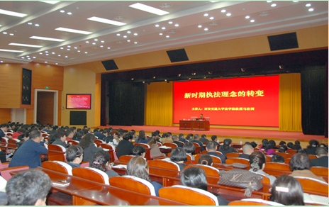 马治国教授从十八届四中全会的时代背景,中国社会主义法律体系的现状,社会主义法治理念和法治体系的特点,新时期执法理念的内容和特征,新时期树立正确执法理念的理论与实践等方面,结合实际案例进行了深入浅出的阐释,受到主持人和听众的高度评价,结束后仍有许多人沿途等待与马教授继续探讨问题,场面非常热烈。据悉,这是省委机关在赵正勇书记首场报告会后,第一场大规模集体学习四中全会决定的活动,收到了极好效果。