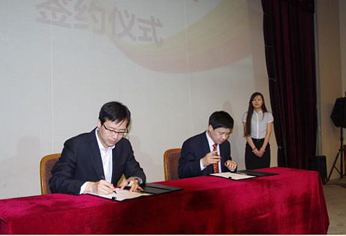 (我校知识产权研究中心主任马治国与西安电视剧版权交易中心总经理党雷签约)