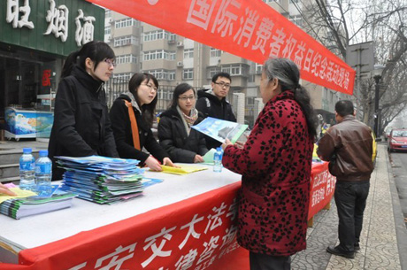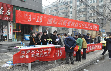 为了更好的宣传消费者权益保护法规和有关消费维权知识,3月15日上午10时,球友会团工委、研究生会联合校工会、西安市太乙路工商局消费者协会在交大市场一条街上设立宣传咨询点,开展了一系列的宣传咨询活动。