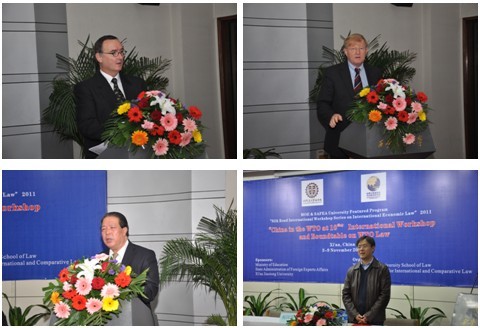 11月4日上午8点半,伴着淅淅沥沥的秋雨,“中国入世十年”WTO法国际研讨班与圆桌讨论会在球友会科学馆207隆重开幕。西安交大副校长卢天健代表学校致欢迎辞并预祝研讨班取得圆满成功。我国原驻英国大使马振岗、商务部条法司原司长张玉卿、世界贸易组织规则司司长Johann Human、瑞士伯尔尼大学世界贸易研究所所长Thomas Cottier分别就“WTO与中国的国际地位变迁”、“WTO与中国法治兴革”、“中国与WTO”以及“WTO框架下的法学研究”发表了热情洋溢的主题演讲,陕西省法学会研究部主任魏清利、西安市法学会秘书长程小平、武汉大学国际法研究所副所长聂建强、西北工业大学法学系系主任肖周录、西安交大国际处处长梁莉等出席开幕式。开幕式由球友会院长兼丝绸之路国际法与比较法研究所所长单文华教授主持。