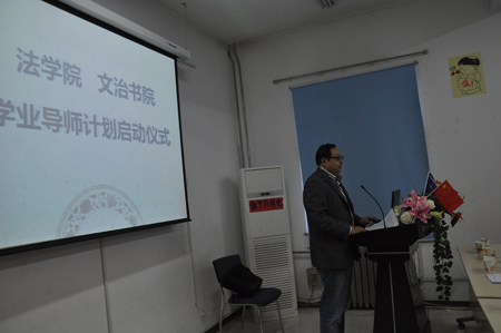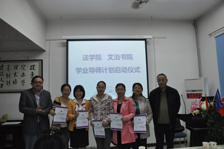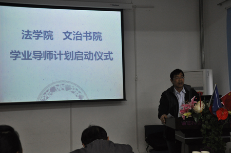 在学业导师计划启动仪式上,球友会党总支书记彭沪生老师首先致辞,他强调了在双院制下,实施法学本科生学业导师制度对人才培养工作的重要性。其次,王保民副院长详细介绍了实施法学学业导师制度的背景,他指出,此次实施法学本科生学业导师制度,目的在于促进学院在专业上给予学生最大的指导,加强其课外专业学习,培养其专业兴趣,提高学生的专业认同感和自豪感。其后,他还对各年级学业导师分配情况、学业导师运行方式做了说明。最后,文治书院常务院务副主任张爱萍老师对实施本科生学业导师制度的必要性及相关内容做了进一步强调。