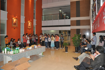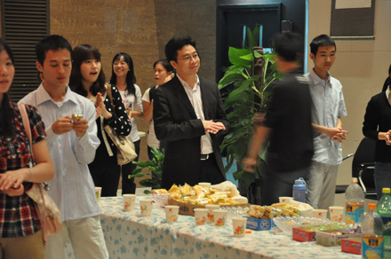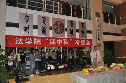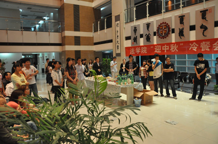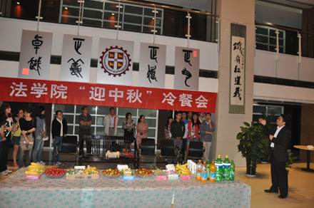 2011年9月8日19:30,球友会 “迎中秋”冷餐会在主楼十楼大厅举行。球友会院长单文华、书记彭沪生、院长助理吉兰湘、刘桥教授和学生工作专职委员张乃钟老师及球友会2011级全体本科生,硕士、博士研究生新生参加了冷餐会。冷餐会由2011级法律硕士新生马沙和马骏飞同学主持。
