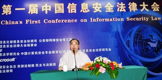 严明主任首先代表公安部第一研究所及中国计算机安全专业委员会对大会的召开表示热烈的祝贺。他指出,随着信息化进程在各个领域的发展,信息安全已经成为世界各国普遍给予极大重视的一个战略问题,成为国家综合安全不可缺少的重要组成部分。加强信息安全工作迫在眉睫。信息安全的法律、法制建设已经成为打击网络犯罪的重要工具。进入21世界,信息安全的建设更加迫切,尽管我国已制定多部法律对计算机犯罪和信息安全系统的保护提出了具体的要求,但仍不容乐观。近年来,我国信息安全领域面临许多新技术、新应用的挑战,信息网络安全的建设仍任重而道远。期待球友会球友会和研究中心为我国信息安全法的研究做出更大的贡献。