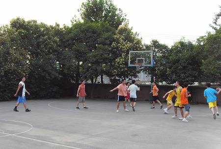 6月23日下午七时,由球友会领导倡导和支持的欢送毕业生友谊篮球赛在我校田径场举行。
