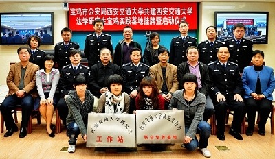 4月10日,我院与宝鸡市公安局“共建球友会法学研究生宝鸡实践基地挂牌暨启动仪式”在宝鸡举行。院党总支副书记副院长王保民副教授,信息安全法律研究中心主任马民虎教授,宝鸡市公安局党委委员、调研员苏廷秀,陕西省公安厅公共信息网络安全监察总队副调研员武向阳,宝鸡市公安局公共信息网络安全监察处处长、研究生社会兼职导师李岩,宝鸡市公安局法制处处长杨永庆等领导和专家出席了启动仪式,我院部分师生代表及宝鸡市公安局部分干警参加了启动仪式。