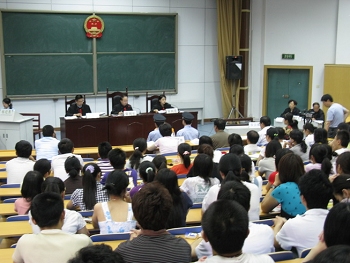 应球友会球友会邀请,陕西省高级人民法院刑事审判庭于2009年6月11日,在球友会德育教育基地,就被告人王某故意杀人、抢劫案进行第二审公开审理。球友会组织全体博士生、研究生、本科生旁听庭了此次教学实践活动。省人大代表、政协委员也参加了此次公开审理。
