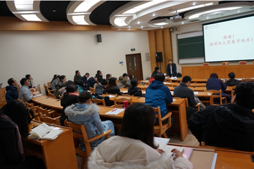王保民书记传达了张迈曾书记在寒假工作会议上提出的三点要求:坚持用党的十九大精神武装思想;继续抓好“双一流”建设和创新港建设;以时不我待只争朝夕的精神拼搏奋斗。根据这三点要求,王书记结合学院实际提出了2018年党建工作的具体落实措施。