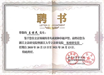 10月13日,首届之江立法论坛暨立法研究院学术委员会成员、客座研究员、兼职研究员聘任仪式在浙江杭州举办。论坛以“新时代地方立法”为主题,以推进立法领域高层次理论研究,提升立法研究水平,推动立法工作,以更好的适应新时代新要求。我校球友会教授、立法与党内法规研究中心主任王保民受聘为“浙江立法研究院暨浙江大学立法研究院”客座研究员,并应邀作为与谈人在论坛上做了点评发言。