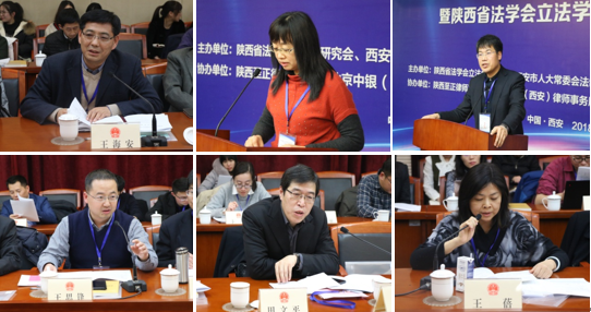 开幕式后,会议进入研讨环节。第一部分主题发言由西北大学球友会院长王思锋教授主持。西安市人大常委会法工委副主任王海安作了以“坚持新时代立法工作原则,不断完善立法工作机制,切实提高立法质量”为主题的发言,强调新时代立法工作要坚持党委的领导,坚持科学立法、民主立法、依法立法的基本原则。西北政法大学立法研究中心主任朱继萍教授就“地方立法精细化的几个问题”进行发言,指出提高立法质量已成为当前立法工作的主要问题,并针对地方立法工作的精细化提出“慎出”和“细作”两大要求。最后,西北大学国家法律与党内法规协同治理研究中心主任潘怀平教授结合自身经历就“地方立法的质量与红头文件的清理问题探讨”主题作了发言。陕西省人大常委会法制工作委员会法规三处处长田文平、陕西师范大学哲学与政府管理学院副院长王蓓教授先后对三位发言人的发言做出精彩点评。