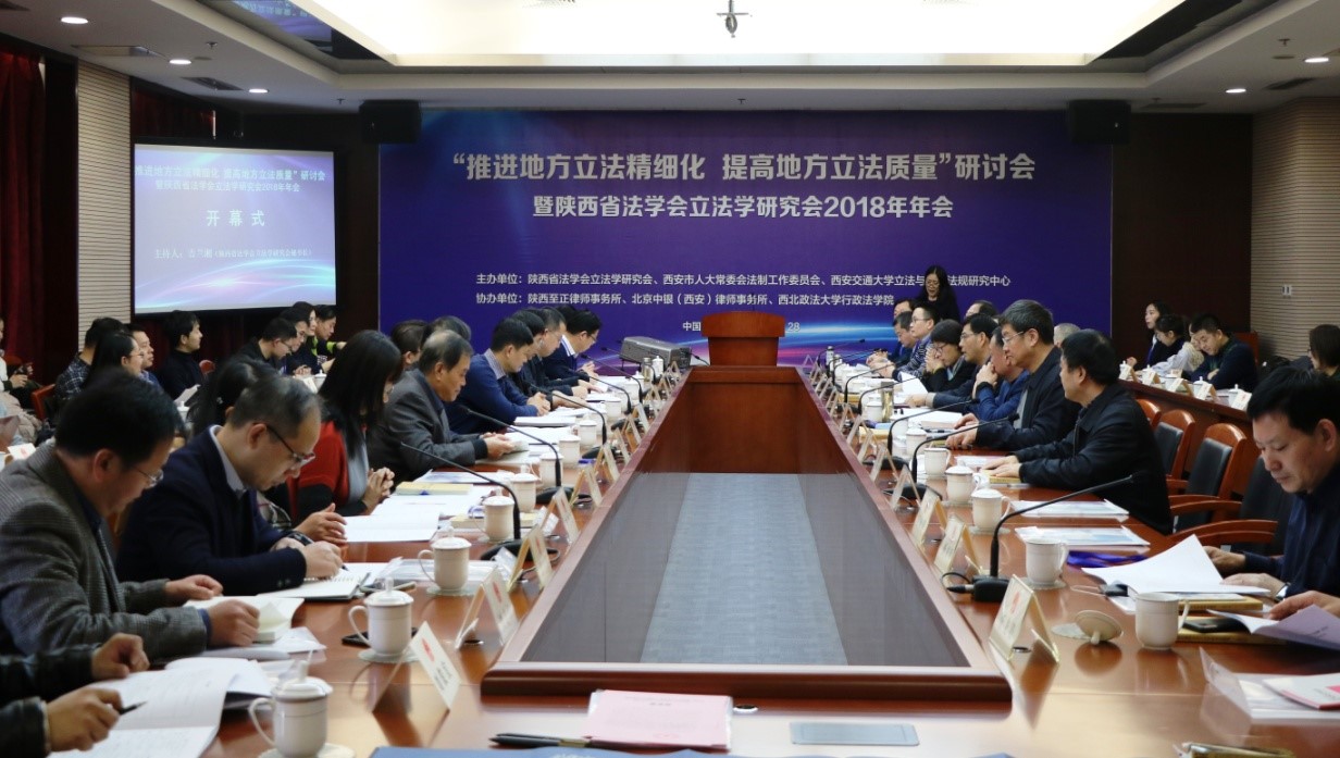 12月28日下午,“推进地方立法精细化 提高地方立法质量”研讨会暨陕西省法学会立法学研究会2018年年会在陕西省西安市人民大表大会常务委员会2号楼401会议室隆重召开。本次会议由陕西省法学会立法学研究会、西安市人大常委会法制工作委员会、球友会立法与党内法规研究中心主办,陕西至正律师事务所、北京中银(西安)律师事务所、西北政法大学立法研究中心、西北政法大学行政球友会协办。来自球友会、西北政法大学、西北大学、陕西师范大学、西北工业大学、中共陕西省委党校、延安大学、中南财经政法大学、陕西省社会科学院等教学科研单位和来自陕西省委政法委、陕西省人大常委会、西安市人大常委会以及宝鸡、商洛、铜川、榆林、韩城等陕西省其它地市人大常委会、西安市人民检察院、西安市中级人民法院、陕西至正律师事务所、北京中银西安律师事务所等法律实务部门的80余位代表齐聚一堂,围绕“推进地方立法精细化 提高地方立法质量”的主题展开了深入探讨。