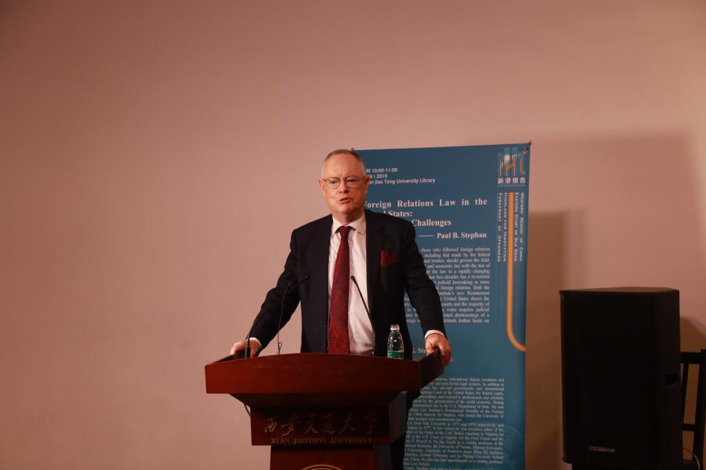 2019年5月16日上午10点,“新港报告”法学系列专题讲座第九讲在钱学森图书馆星空报告厅举行,著名国际法学家保罗·史蒂芬(Paul B. Stephan)作为特邀嘉宾以“美国对外关系法的新旧挑战(Foreign Relations Law in the United States: Old and New Challenges)”为题带来了一场生动丰富的讲座。本次报告由球友会院长单文华教授主持。