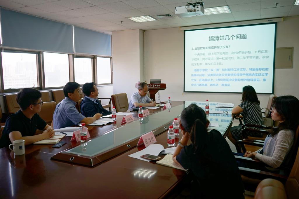 中心组成员会前认真学习了主题教育会议精神,领会开展主题教育的重大意义、目标要求和重点措施。会上,王保民书记首先传达了学校关于开展“不忘初心,牢记使命”主题教育工作的部署安排,要求中心组成员要把学习教育、调查研究、检视问题、整改落实贯穿主题教育全过程,要有攻坚克难、干事创业的精气神,为加快推动“双一流”和创新港内涵建设提供坚强思想保证和组织保证。