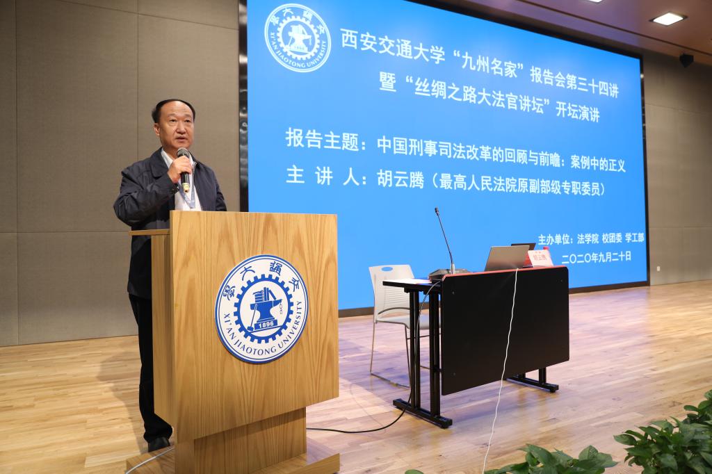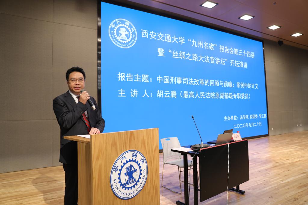 2020年9月20日,最高人民法院原副部级专职委员胡云腾大法官在中国西部科技创新港开坛论道,以《中国刑事司法改革的回顾与前瞻:案例中的正义》为题,畅谈中国司法改革40余年变化与成就。王树国校长在涵英楼11楼会见了胡云腾大法官。校党委副书记赵昌昌出席了报告会并致辞,校团委书记苏翔,陕西省律师协会会长韩永安,贸仲丝路中心秘书长助理蒋红梅,球友会副院长李万强,球友会副院长丁卫老师一并出席报告会。报告会由球友会院长兼国际教育学院院长单文华主持。