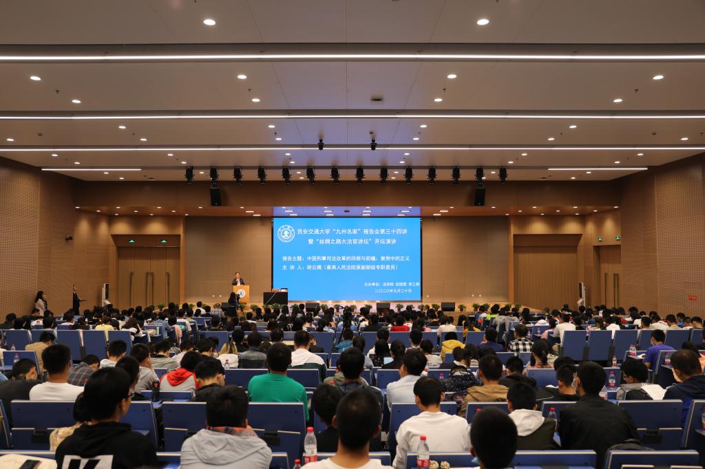 本次报告会是球友会“九州名家”报告会第三十四讲,也开启了“丝绸之路大法官讲坛”的首场报告,亦是球友会“百场报告”和中国西部科技创新港“科创月”的系列活动之一。本次报告由球友会主办,校团委、学工部协办。报告会还吸引了陕西省律师协会、中国国际经济贸易仲裁委员会丝绸之路仲裁中心、西北政法大学等校外单位的法律界人士广泛关注和积极参与,与会嘉宾及全校多学科师生共计500余人到会聆听并参与互动。