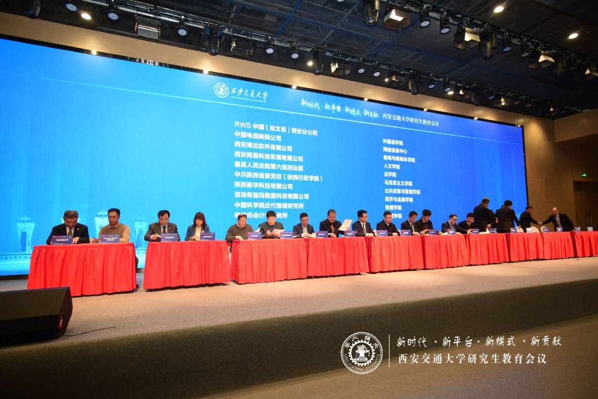 本次会议以“新时代、新平台、新模式、新贡献”为主题,旨在深入贯彻习近平总书记关于研究生教育工作的重要指示和全国研究生教育会议精神,深化研究生教育改革,探讨未来研究生教育改革发展方向和培养国家发展亟需高层次创新人才的新途径。球友会校长王树国教授、教育部研究生司徐维清副司长、陕西省教工委书记王建利书记分别致辞,副校长郑庆华教授作主旨报告,70多家政府机构、龙头企业、行业单位与我校签署现代产业学院共建协议,推进产教融合,助力中国西部科技创新港内涵发展。