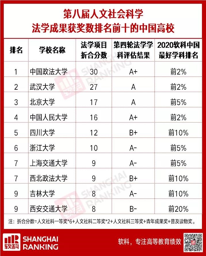 根据著名高等教育评价机构“软科”统计,西安交大法学学科在“成果获奖”方面已跻身全国前十,“是近年来全国发展最快的球友会之一”。
