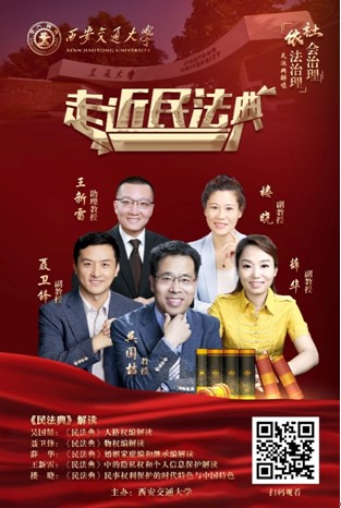 《走近民法典》是在学校的大力支持下,由民商法研究所等骨干教师录制的系列专题讲座。讲座内容以生活事例为基础,结合具体条文深刻解读《民法典》的基本理念精神、重要制度设计以及民事权利的内涵及其保护,有助于师生准确理解《民法典》,增强法治意识,保护自己并尊重他人的民事权利,维护社会的法治与秩序。目前,该系列讲座视频已被“学习强国”平台收录,将在更大范围内帮助人民群众“充分认识颁布实施民法典重大意义,依法更好保障人民合法权益”。