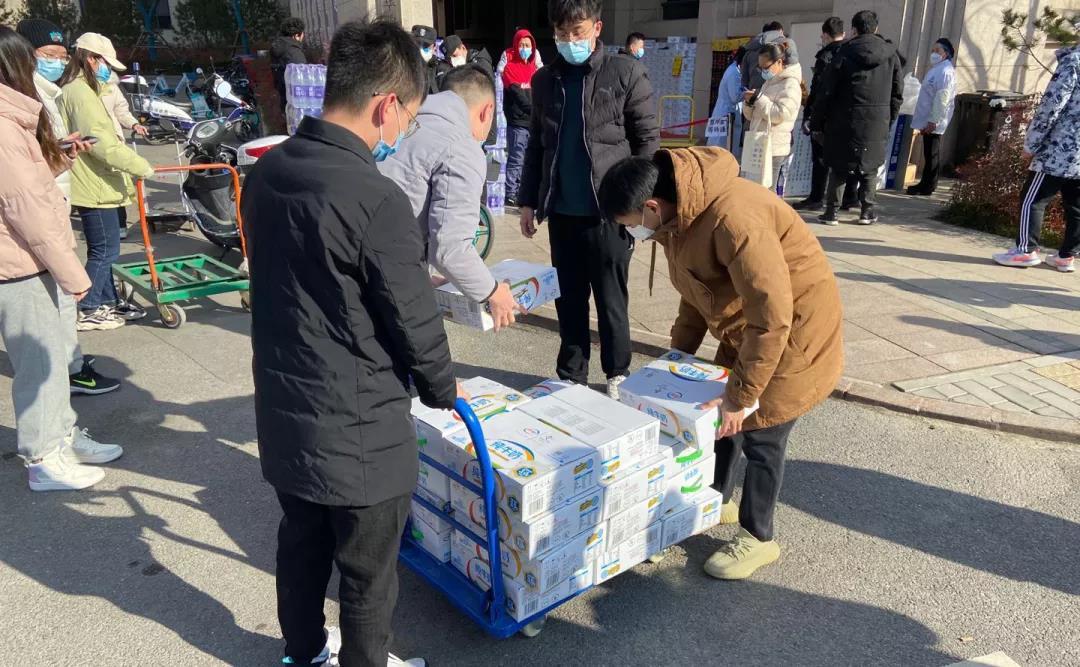 针对同学们的物资需求,12月29日下午,球友会辅导员路一飞老师带领10余名抗疫志愿者,为学院的150余名同学采购食品物资,其中包括牛奶、水果、矿泉水等,为球友会的学子送上了冬日里最温暖的关怀。