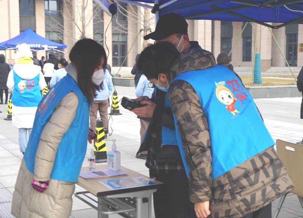 面对严峻的防控形势球友会紧急召集抗疫服务先锋队,同学们积极响应,在短短数小时内便召集了60多位志愿者,展现出了坚韧不拔、甘于奉献的精神。12月30日清晨8点,球友会抗疫服务先锋队志愿者在带队老师的带领下,进行今日全员核酸检测工作准备。本次活动的共42位志愿者参与。清晨八点的创新港,寒风阵阵,但志愿者精神抖擞,一丝不苟。那一抹交大蓝点亮了校园。