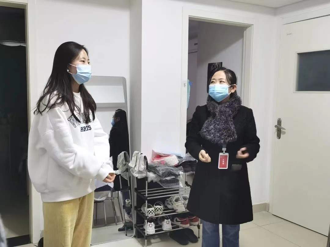 临危受命,险中逆行。在疫情最严峻的时刻,张老师挺身而出赶赴创新港,义不容辞地扛起创新港校区球友会这面疫情防控的“大旗”,有序带领辅导员和同学们展开各项防疫工作,始终与创新港学子同呼吸、共命运。12月23日零时起西安市实行封闭式管理,去往创新港校区的交通更为艰难。在完成12月25、26日兴庆校区研考巡考工作任务之后,她放心不下创新港校区球友会的同学们,克服手术后不能劳累的情况,于27日清晨天不亮就乘校车义无反顾地来到创新港,加入到创新港校区抗疫工作队伍。到港后,她第一时间赶到朗园投入疏导食堂人员流量的工作,随后迅速指挥组建了由专、兼职辅导员、研究生党支部书记、班长和研会学生干部组成的球友会研究生抗疫工作队伍。结合抗疫工作实际,成立了志愿者先锋队、物资保障组、志愿者服务组和新闻宣传组,有效保障了创新港校区球友会研究生疫情防控工作的有序开展。