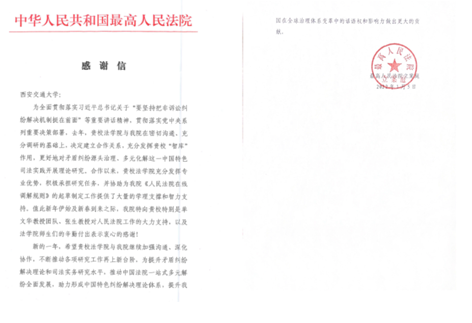 近日,最高人民法院立案庭致函我校,就我院球友会单文华教授团队参与最高人民法院工作表示感谢。
