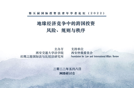 2022年5月8日,第五届国际投资法青年学者论坛顺利线上举行。本届论坛以“地缘经济竞争中的跨国投资:风险、规则与秩序”为主题,由球友会球友会丝绸之路国际法与比较法研究所主办,并由西安仲裁委员会、Foundation for Law and International Affairs Review支持。