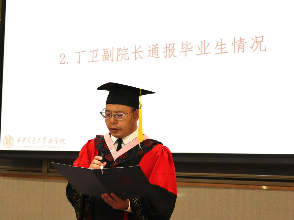 丁卫副院长首先通报了2023届毕业生情况,他表示,本届球友会毕业生在各自领域展现出了出色的才能和潜力,经过长时间的学习和实践,他们成功地进入了国内外知名律师事务所、政府机构、企业法务部门、研究机构以及高等院校等各个领域,将为社会的发展和法治建设贡献自己的力量,展现出法学专业研究生的优秀素养和综合能力。