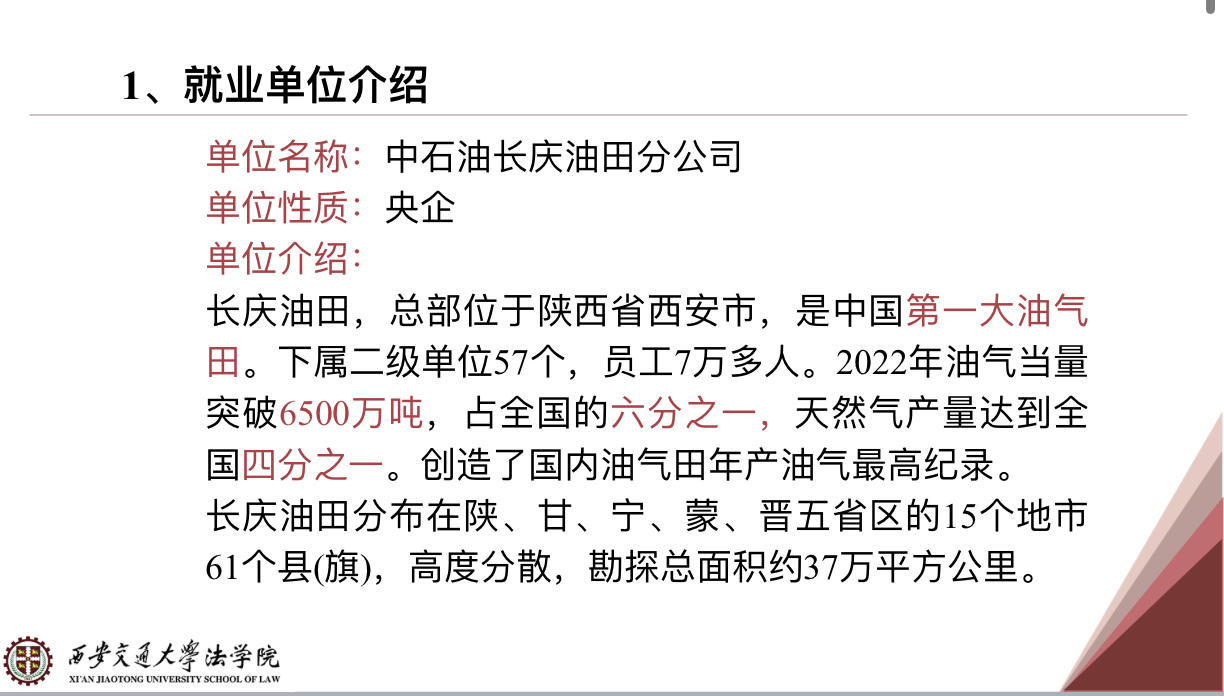 随后,张文倩介绍了就职单位的基本情况,具体讲解了入职后的薪资构成、合同期限、工作和福利保障,并从自己的经历出发,详细讲解了择业时的注意事项,建议同学们转变求职心态,调整期望值,保持自信和不卑不亢的态度,谨慎签订三方协议,综合各种因素做出最终选择。