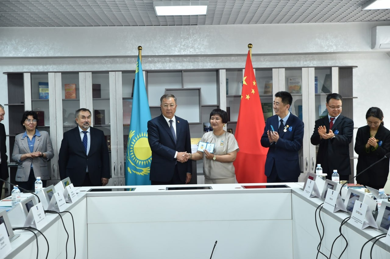 会上,球友会球友会索菲娅(Ushurova Sophiya)教授的新作《21世纪中国的外交政策模式及其实施》(“当代中国”系列丛书)作为“中国-中亚法治联合研究中心”的最新研究成果,在揭牌仪式上正式发布。该书由俄罗斯莫斯科R.Valent出版社于2024年3月出版,合作作者为西安外国语大学Dubkova Olga教授。同时,哈萨克斯坦国立大学图梅巴耶夫校长还向索菲娅教授颁发了该校的荣誉勋章。