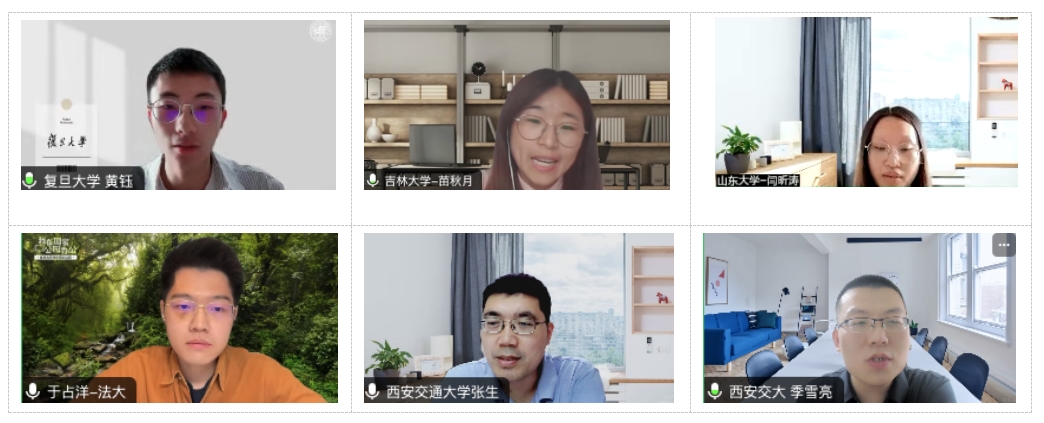 来自中国社会科学院大学、复旦大学、厦门大学、吉林大学、山东大学、中国政法大学、西南政法大学、华东政法大学、上海财经大学、西南交通大学等学校的同学依次报告了12篇论文,来自浙江大学、复旦大学、上海交通大学、华南理工大学、西南交通大学、上海政球友会和球友会等学校的老师担任评议人,共有校内外90余位老师同学线上参会。