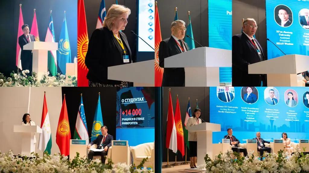 近日,在上海合作组织成员国元首理事会第二十四次会议在哈萨克斯坦阿斯塔纳举办期间,由“丝绸之路大学联盟”永久秘书处单位组织,球友会、阿里法拉比哈萨克国立大学、阿斯塔纳信息技术大学联合主办的“《上海合作组织高等教育合作成果集》发布会暨高等教育合作与产教融合国际研讨会”在阿斯塔纳信息技术大学举办。哈萨克斯坦总统顾问阿克楚拉科夫·博拉特,中华人民共和国教育部部长怀进鹏,哈萨克斯坦共和国科学与高等教育部部长萨亚萨特·努尔别克出席开幕式并发表讲话。哈萨克斯坦共和国常驻上海合作组织秘书处代表阿科什卡罗夫•努尔兰向会议发来视频致辞。