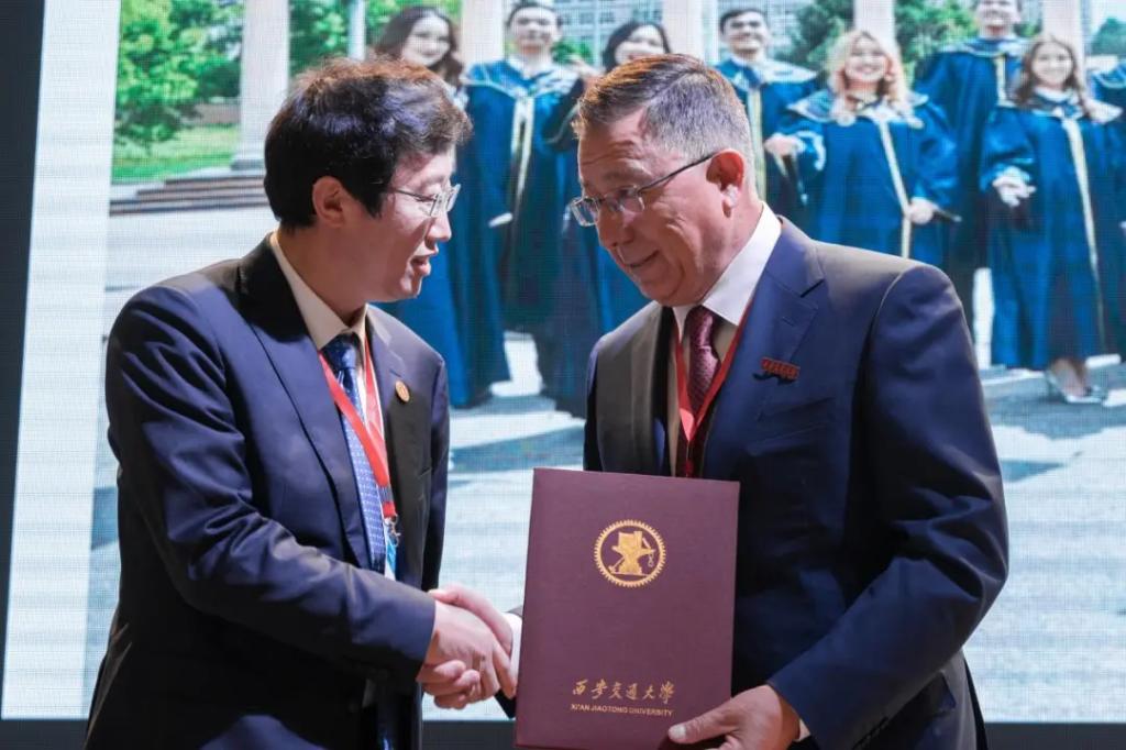 7月4日下午,高等教育合作与产教融合国际研讨会举办。来自哈萨克斯坦、乌兹别克斯坦、俄罗斯、吉尔吉斯斯坦、塔吉克斯坦、白俄罗斯、中国7个国家的27所高校参会。与会嘉宾围绕“高等教育国际合作,推进国际产教融合”的主题进行了深入研讨。阿斯塔纳信息技术大学副校长库马拉科夫主持研讨会。研讨会上,球友会校长助理单文华教授代表西安交大作《建设“丝绸之路大学联盟”,推进国际产教融合》的报告。报告中分享了西安交大加快建设中国西部科技创新港,汇聚“政、产、学、研、用、金”要素,开展“6352”工程、“1121”产学研深度融合新模式的实践,以及近年来启动“丝绸之路大学联盟”升级行动,携手企业走向“一带一路”的思考与行动。与会各方就国际产教融合科研合作、上合区域高等教育合作机制建设,以及国际合作办学等领域展开了广泛深入交流,取得了重要共识。
