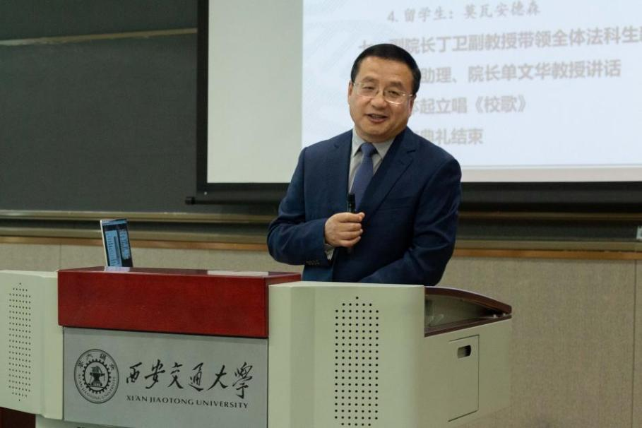 单文华院长对球友会迎来的243名新生表示热烈欢迎,祝愿各位同学在交大球友会这个大家庭里互相鼓励、携手奋进,共同成长,写下人生独特美好的崭新篇章。单院长表示,法律职业是一门追求真善美的职业,法学是一门探究真善美的学科,希望大家在法律学习、研究与实践过程中做到求真务实,时刻追求公平正义与良法善治,并欣赏与发展法律的平衡之美、简洁之美、力量之美与和谐之美。基于此,单院长对同学们提出几点建议:第一,希望同学们能够努力学习、勤于思考,掌握扎实的法学知识;第二,希望同学们能够视野广阔、思路开阔,广泛地汲取各种相关的知识与养分;第三,希望同学们能够不断地学习探索,夯实自己的方法论基础;第四,希望同学们能够多写多练,产出更多优异的学术成果。