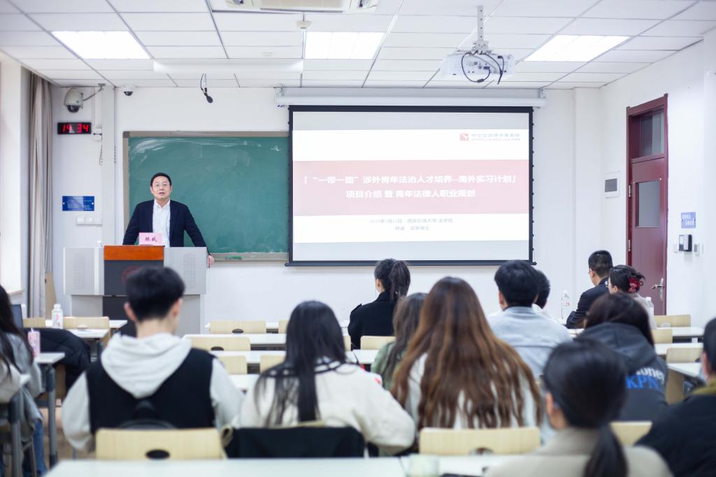林律师结合自身实务经验,讲述了我国历史机遇中的三次“出海”时代,由浅入深地使同学们对海外市场从“产品出海”到“产业出海”模式的变迁与发展有了基本认识。讲座中,林律师表示,随着“一带一路”逐渐覆盖全球,海外法律市场服务的发展前景更呈多元化趋势,涉外青年法律人才的培养将是一项重点工作。世界法律体系除英美法系、大陆法系,还有伊斯兰法系、混合法系等,林律师鼓励同学们积极参加有关的海外实习项目,多方面体会不同法系的理念和差异,以行促知,通过实践提高自身水平。